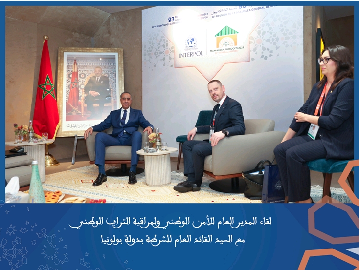 علاوة على اللقاءات والمباحثات التي أجراها المدير العام للأمن الوطني ولمراقبة التراب الوطني مع رئيس منظمة الأنتربول وأمينها العام وأعضاء لجنتها التنفيذية، قام أيضا بإجراء لقاءات ثنائية مع ممثلي بعض المنظمات الدولية والإقليمية التي تشارك في أشغال الجمعية العامة للأنتربول، وذلك في إطار المساعي المبذولة لتعزيز التعاون الأمني المتعدد الأطراف مع المنظمات والمنتديات ذات الصلة بالعمل الأمني وعمليات حفظ السلام.
