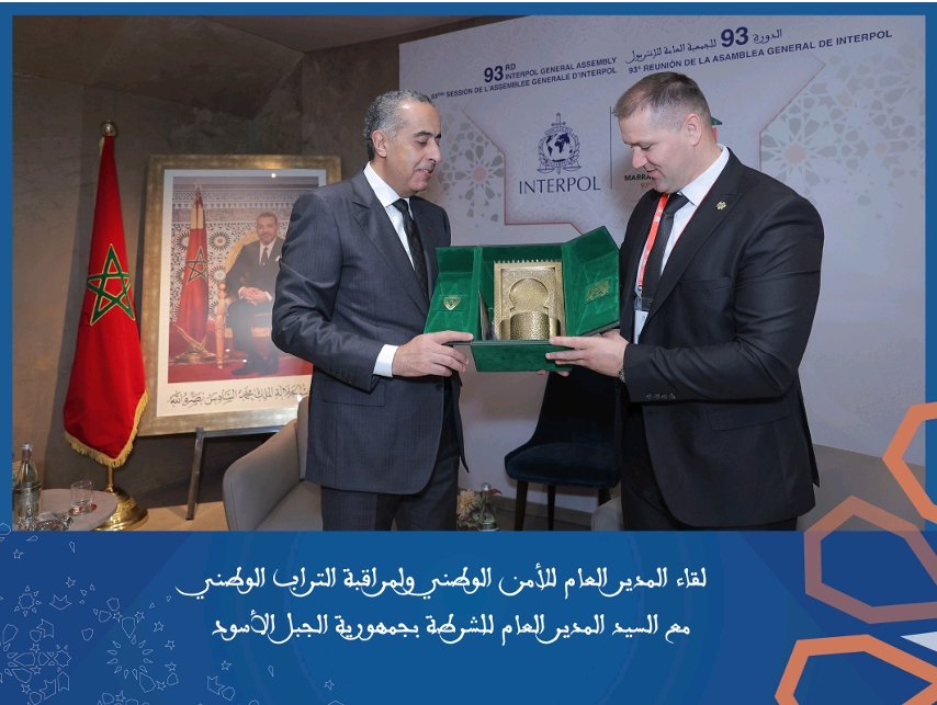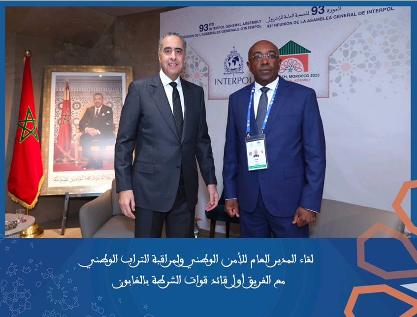 ومع الشركاء الأمنيين في إفريقيا ، تباحث المدير العام للأمن الوطني ولمراقبة التراب الوطني والوفد المرافق له مع المدير العام للشرطة الجمهورية بدولة بنين والمدير العام للأمن الوطني بالجمهورية الإسلامية الموريتانية، والمدير العام للشرطة الوطنية بدولة بوركينا فاسو، والمدير العام للشرطة الوطنية بدولة مالي ومع المندوب العام للأمن الوطني بدولة الكاميرون، ومع المفتش العام للشرطة بدولة ناميبيا، ومع وزير العدل بدولة رواندا ، ومع اللواء المدير العام للشرطة السودانية، ومع المدير العام المساعد للشرطة الوطنية بدولة النيجر، والمدير العام المساعد المكلف بالموارد البشرية في شرطة تشاد، ومع المدير المركزي للشرطة القضائية بدولة السينغال، ومع الفريق أول قائد قوات الشرطة بالغابون، ومع المفتش العام للشرطة بدولة كينيا *والمدير العام للأبحاث الجنائية بدولة الموزمبيق*.