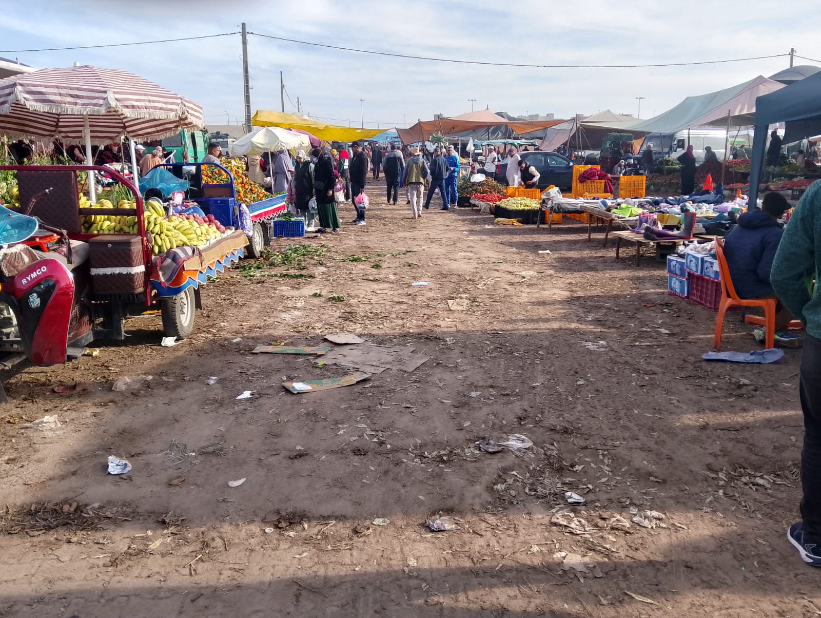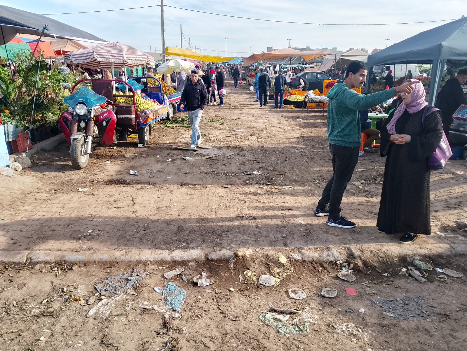 فلسنوات، ظل الباعة الجائلون وبعض الباعة les stables يحتلون الممرات، فيمارسون تجارتهم فوق طرق يفترض أن تكون متنفساً لمرتادي السوق الأسبوعي. هذا الاحتلال العشوائي لا يعرقل فقط حركة المواطنين، بل يضيق الطريق حتى يكاد يبتلع أنفاس كبار السن، الذين يتعثرون بحبال الخيام الممدودة مثل أفخاخ غير مرئية.